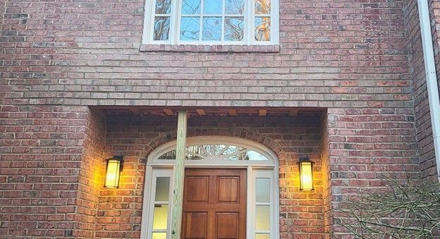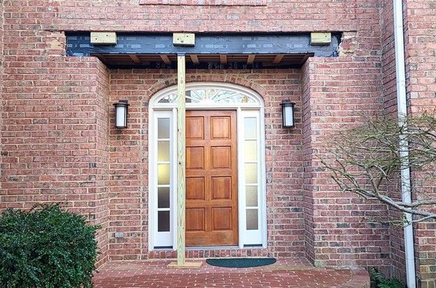 Our priorities became clear: support the brick to prevent collapse and find a way to cover the exposed corners. The homeowner was set on the original design, so changing the canopy shape was not an option. We partnered with a skilled mason to install matching brick in the corners and properly fit a new lintel to support the brickwork, reshaping the porch opening as planned. Within three days, the masonry was complete and blended seamlessly with the original.